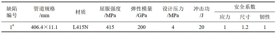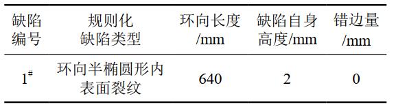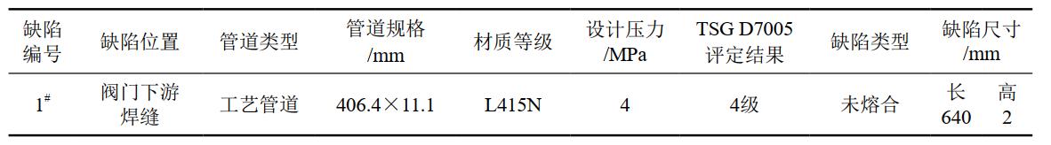 輸氣站場(chǎng)全面檢驗發(fā)現站內工藝區某閥門(mén)下游焊縫處存在未熔合缺陷。管道及焊縫缺陷基本信息如表 2所示。