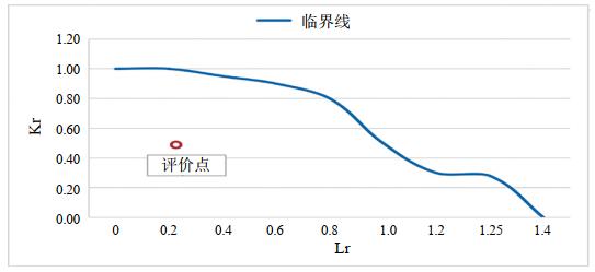 1#環(huán)焊縫缺陷評價(jià)結果如圖 6所示,其載荷比Lr為0.202, 韌性比Kr為0.541。由此可知,在未考慮其他外部附加載荷的情況下,該環(huán)焊縫可接受,但其為根部危害性缺陷,且焊口整體質(zhì)量差,建議采取有效的監控措施。