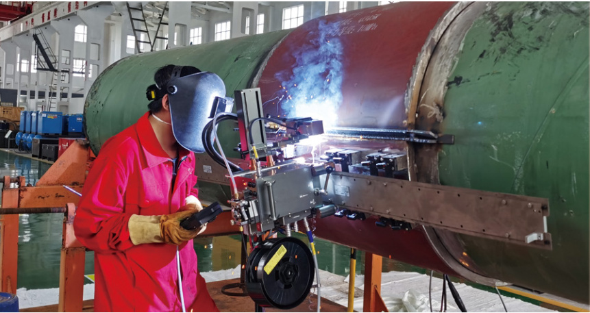 (3)焊接起弧前應將焊槍調整至合適的位置,焊接開(kāi)始就要調整焊槍與擺寬,觀(guān)察坡口兩側的熔合情況?v焊縫焊接時(shí)注意觀(guān)察上坡口填充量及熔合情況,環(huán)角焊縫在打墊層焊接時(shí)控制好行走速度,在保證熔合正常的情況下盡可能行走快一點(diǎn)。每一層焊接完成后務(wù)必清理導電嘴,并調節保護氣罩至合適位置。