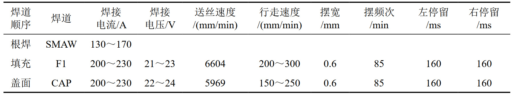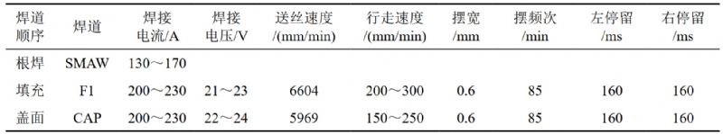 (3)焊接試驗。在管徑1016 mm、X70管道進(jìn)行B型套筒縱焊縫焊接試驗(圖 2),焊接參數如表 1所示。
