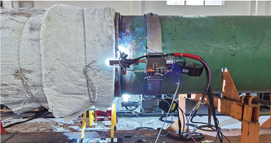 摘要:近年來(lái),效率高、質(zhì)量穩定的全自動(dòng)焊接技術(shù)在長(cháng)輸管道施工中得到了廣泛應用。針對X70高鋼級大口徑管道B型套筒自動(dòng)焊接工藝開(kāi)展焊接試驗研究,選擇全位置自動(dòng)焊接系統,確定了B型套筒縱焊縫焊接、環(huán)角焊縫焊接等關(guān)鍵工序的自動(dòng)焊接工藝,介紹了自動(dòng)焊接注意事項及焊接缺陷的產(chǎn)生及處理方法,通過(guò)焊接試驗表明焊接質(zhì)量合格。將其與人工焊接進(jìn)行對比,結果顯示可以縮短焊接用時(shí)34%、節省耗材25%。