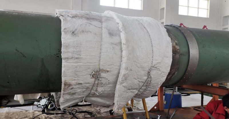 縱焊縫、環(huán)角焊縫焊接完成后,使用石棉被對焊縫保溫緩冷(圖 5)。