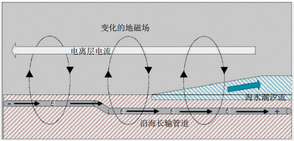 圖 2 潮汐感應、電離層電流作用于沿海管道