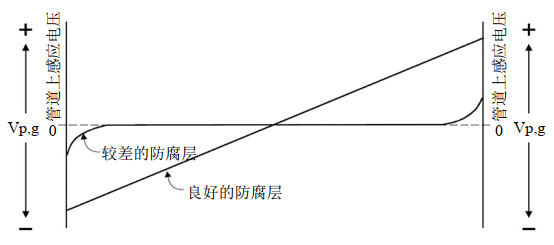 圖 3 較差防腐層與良好防腐層管道典型的地磁感應電位分布曲線(xiàn)