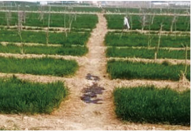中洛線(xiàn)起于濮陽(yáng)縣,止于洛陽(yáng)煉化,干線(xiàn)全長(cháng)282.35 km,設5座站場(chǎng),管徑426 mm,設計壓力6.27 MPa,設計輸量500×104 t/a,1992年9月27日投產(chǎn),混輸中原油田原油和進(jìn)口原油。2021年3月6日下午17時(shí),衛輝站管道保護工巡至中洛線(xiàn)118#樁+700 m處,發(fā)現管道正上方有少量油跡(圖 1),東西向約1 m、南北向約0.3 m范圍內有明顯的原油氣味,立即打電話(huà)向站長(cháng)和處調度匯報情況。事件發(fā)生時(shí)管道為正輸流程,密閉常溫輸送,輸送油品為混合原油。