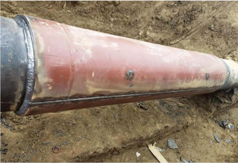3月14日17時(shí),使用定制的2 m異型加強套筒進(jìn)行永久修復,完成套筒焊接作業(yè)及管道防腐,現場(chǎng)回填。