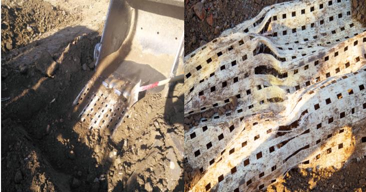 摘要:防范施工挖掘損壞管道一般常用鋼筋混凝土蓋板,存在成本高、施工難度大、施工耗時(shí)長(cháng)等不足。針對這些問(wèn)題,本文開(kāi)展了高強度柔性蓋板選型工作,明確了其外觀(guān)尺寸、力學(xué)耐久性能等主要指標。通過(guò)現場(chǎng)挖掘試驗,驗證了高強度柔性蓋板的安全性、適用性,并且具有結構簡(jiǎn)單、施工方便、可靠穩定、經(jīng)濟合理等特點(diǎn),在管道建設期、運營(yíng)期提前預埋,可以較好發(fā)揮第一時(shí)間的警示提醒和防護保護功能,應用前景廣闊。