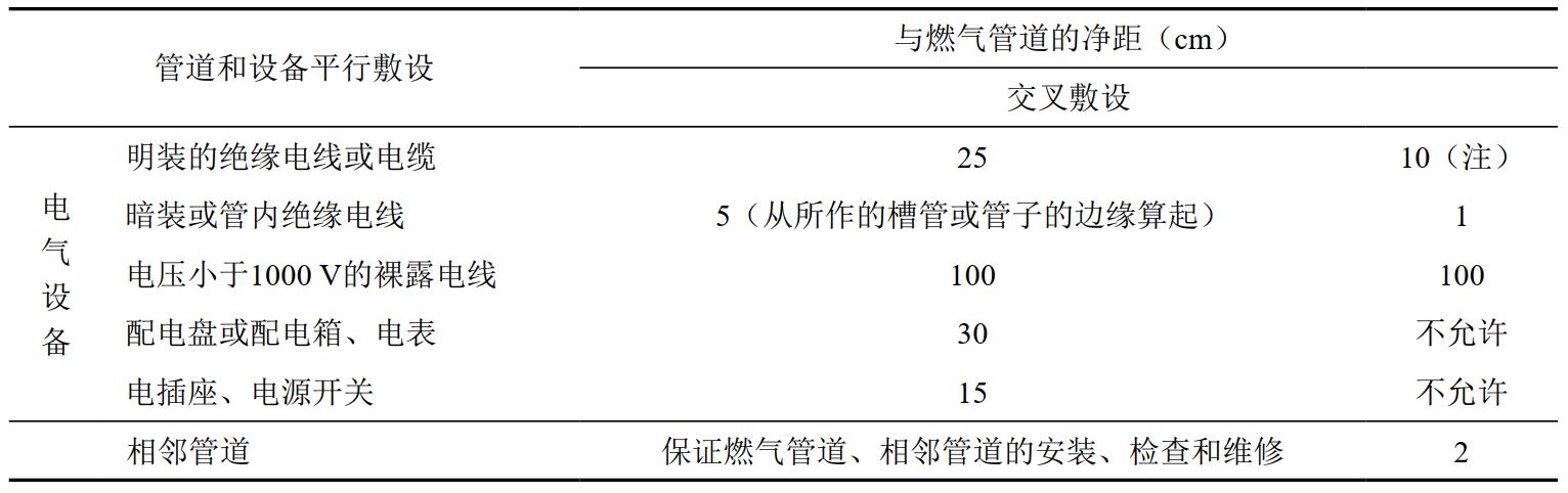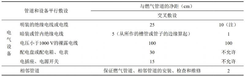 表 1 室內燃氣管道與電氣設備、相鄰管道、設備之間的最小凈距