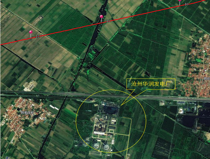 圖 1 滄河線(xiàn)與滄州華潤發(fā)電廠(chǎng)相對位置圖