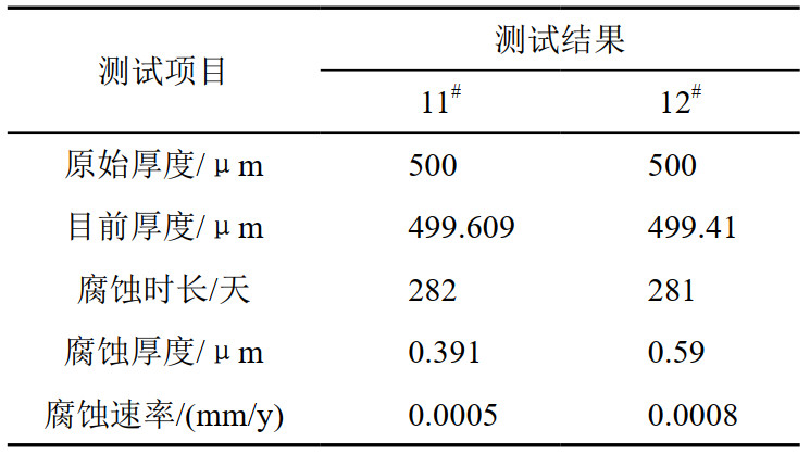 (4)2022年10月,通過(guò)現場(chǎng)11#和12#ER腐蝕探頭采集儀數據計算腐蝕速率,結果如表 2所示。腐蝕速率均小于0.01 mm/y,腐蝕風(fēng)險評價(jià)為“低”。