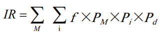 式中:f 為管道失效頻率;PM為氣象條件概率;Pi為點(diǎn)火概率;Pd為人員死亡概率。