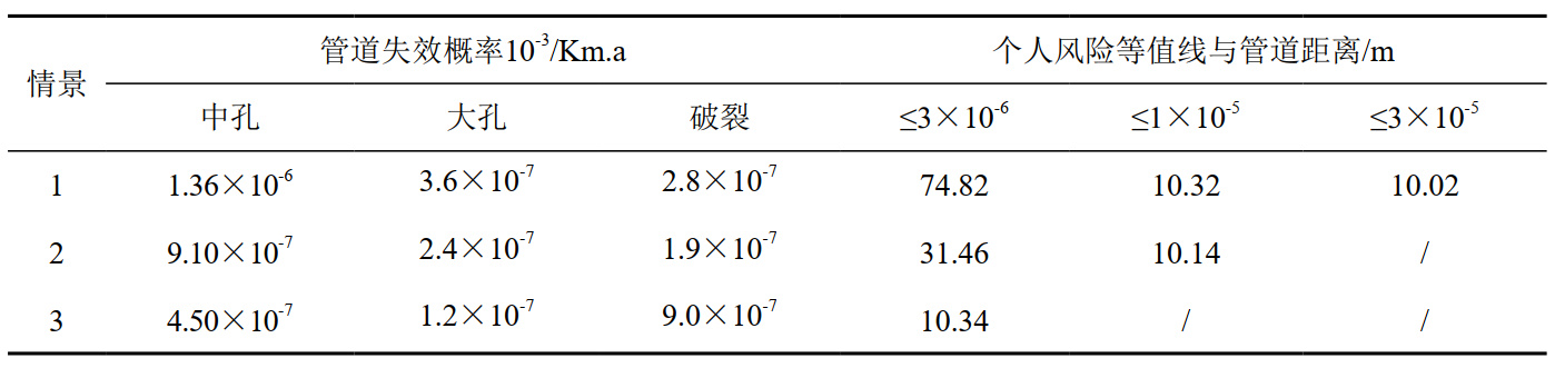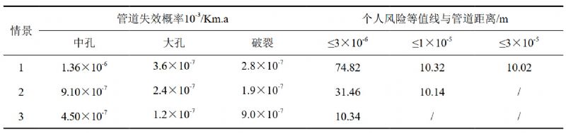 表 2 管道失效概率與個(gè)人風(fēng)險