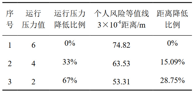 表 3 不同運行壓力下的個(gè)人風(fēng)險