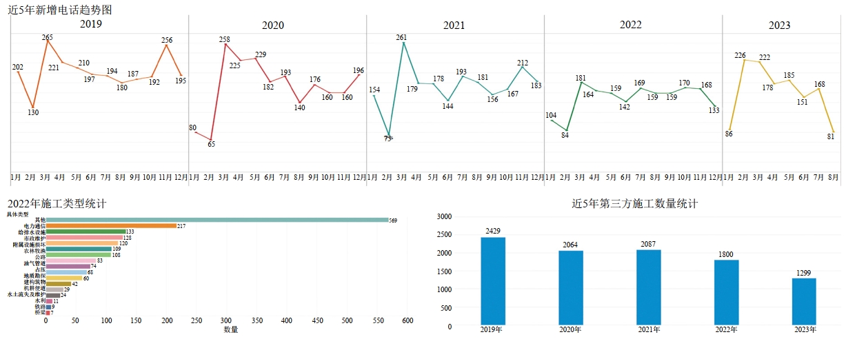 圖 1 管道沿線(xiàn)近5年施工情況統計