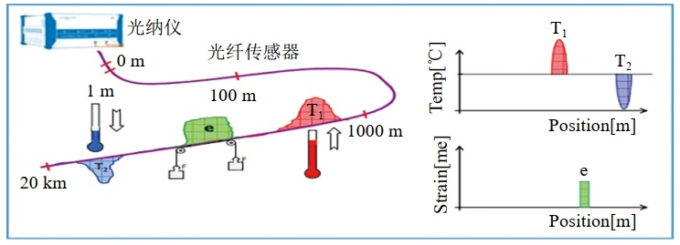 分布式光纖傳感技術(shù),以光纖作為傳感檢測元件,通過(guò)檢測光纖中散射光信號的變化,達到監測溫度變化、應變變化的目的(圖 1)。相比于傳統地質(zhì)災害監測技術(shù),分布式光纖最顯著(zhù)的優(yōu)點(diǎn)在于分布式,具備線(xiàn)狀空間連續監測的性能,監測長(cháng)度可達到幾十公里。線(xiàn)性長(cháng)距離的監測技術(shù)應用于同樣為線(xiàn)狀長(cháng)距離的油氣管道安全監測,有其獨特的優(yōu)勢,為管道地質(zhì)災害早期識別與監測提供了新途徑,有廣闊的應用前景。