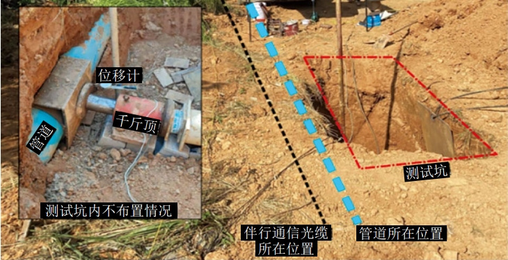圖 3 千斤頂推動(dòng)管道及同溝的伴行光纜側向位移