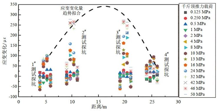 圖 6 原位試驗中不同級次推力作用下管道應變變化