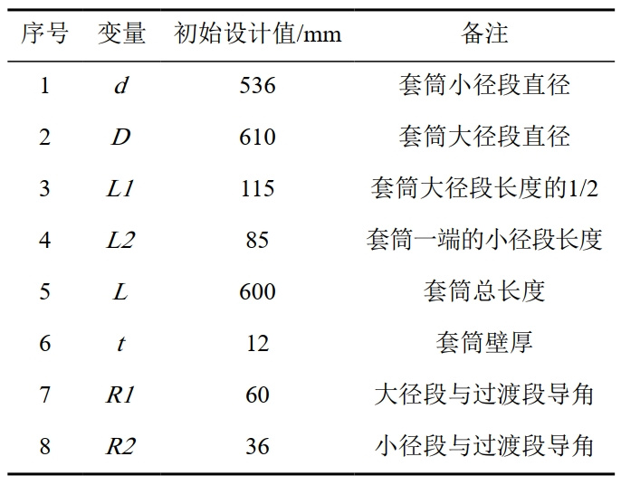 表 1 直線(xiàn)導角型B型套筒優(yōu)化初始參數