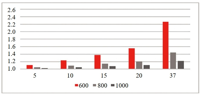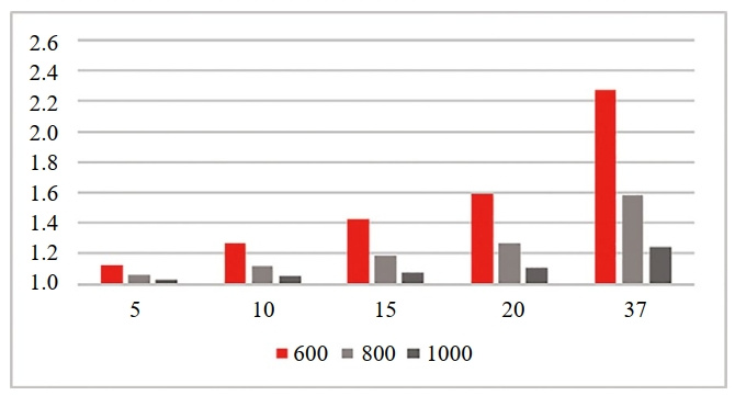圖 5說(shuō)明了缺陷高度與套筒應力集中系數之間的關(guān)系。圖中x軸表示以毫米為單位的缺陷高度,而y軸表示套筒應力集中系數。相同參數水平下的套筒應力分布結果比較表明,缺陷高度與套筒應力集中因子呈正相關(guān),套筒長(cháng)度與套筒應力集中因子負相關(guān)。此外,缺陷高度與套筒的最大VonMises應力呈正相關(guān),而套筒長(cháng)度則呈負相關(guān)。當缺陷高度保持不變時(shí),較大的套筒長(cháng)度下套筒應力集中系數較小,相應的應力儲備裕度越大,反之亦然。
