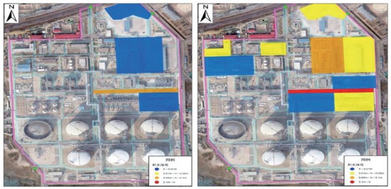 圖 2 不同暴雨預警等級下場(chǎng)區積水情況預測
