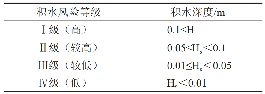 表 2 暴雨災害積水風(fēng)險等級劃分標準