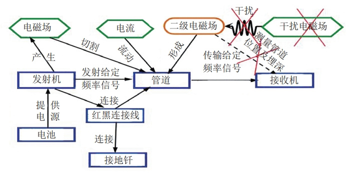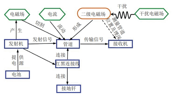 (1)定義技術(shù)系統實(shí)現的功能。問(wèn)題所在的技術(shù)系統為電磁感應系統,該技術(shù)系統的功能是測量管道位置和埋深,實(shí)現該功能的約束為強電磁干擾。