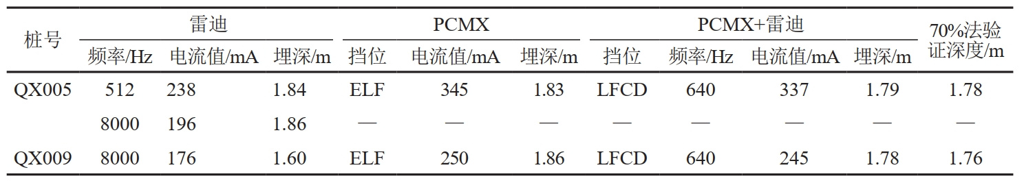 對110 kV、220 kV兩種類(lèi)型高壓線(xiàn)進(jìn)行試驗,接收機接收信號比較強,感應電流比較大,數據顯示穩定。PCMX加雷迪組合方式測量管道埋深與70%法驗證的埋深數據基本一致。證明通過(guò)最終解可以準確完成高壓輸電線(xiàn)路與管道交叉處數據測量工作。該最終解可用于高壓輸電線(xiàn)路與管道交叉、管道存在較大交流干擾等異常管段,能有效提高管道測量精度、降低管道位置和埋深不清引起的第三方損壞風(fēng)險。同時(shí)能節省人工開(kāi)挖驗證所需的人力物力財力、降低人工開(kāi)挖過(guò)程中光纜損傷風(fēng)險。