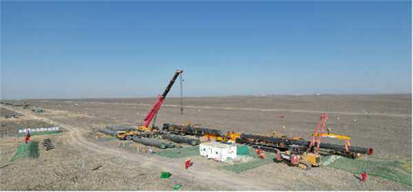 項目部經(jīng)理董悅新等對協(xié)會(huì )一行表示歡迎。他介紹說(shuō),西氣東輸四線(xiàn)(新疆吐魯番—寧夏中衛)管道全長(cháng)1745km,途經(jīng)新疆、甘肅、寧夏3省區,設計壓力12MPa,管徑1219mm,年設計輸量150億方/年。 其中新疆段長(cháng)583.0km,甘肅段長(cháng)1079.0km,寧夏段長(cháng)83.0km,設置12座站場(chǎng)。計劃2024年10月建成具備投產(chǎn)條件。