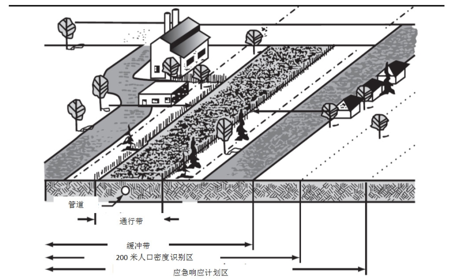 綜合上述定義可以看出,通行帶、管廊、控制區及規定區是保障管道運行、維護的通道,是保障管道在地下穩定的基本要求。它不是保障管道泄漏后不影響周邊公共安全的距離,而是管道公司根據運維的需求,從土地所有者購買(mǎi)的路權,但雙方在遵守協(xié)約的條件下可以共同使用。