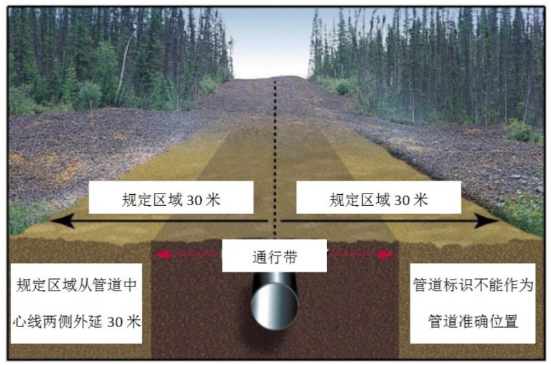 控制區(Controlled areas)是指管道監管機構通過(guò)實(shí)施法規,以保護管道和環(huán)境以及公眾、承包商和管道公司員工的安全而確定的區域。指定管道兩側各30米的區域除了正常的農業(yè)活動(dòng)之外,進(jìn)行任何地面施工都必須做到:①確定是否存在管道。②通知管道公司地面擾動(dòng)活動(dòng)的性質(zhì)和時(shí)間表。③按照該法規進(jìn)行地面擾動(dòng)活動(dòng)。