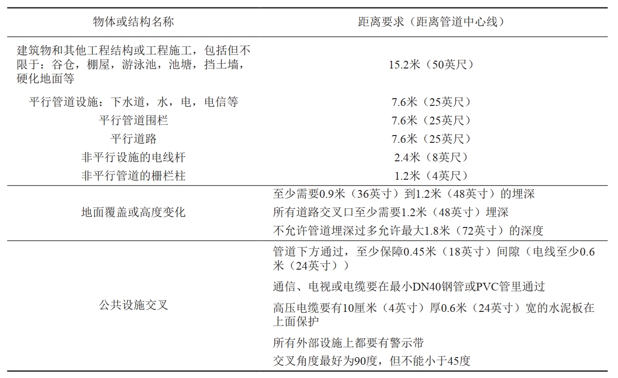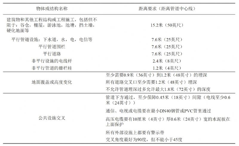 北美地區對管道通行帶距離的要求基本一致,但在如何控制周邊施工和距離方面差異較大。