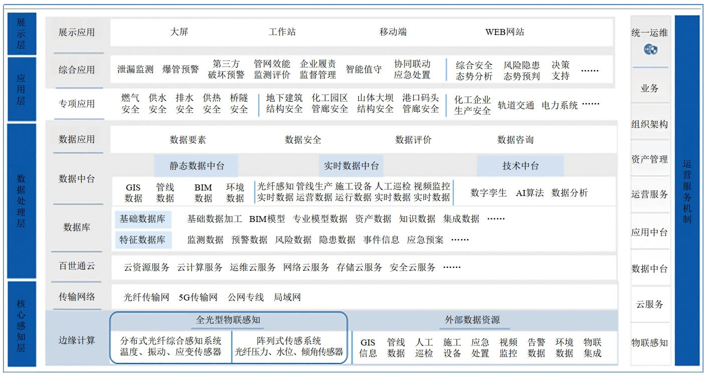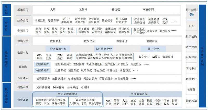 該一體化平臺主要由核心感知層、數據處理層、應用層、展示層組成(圖 2),具備從接收預警→隱患確認→視頻會(huì )議→應急預案→工單下發(fā)→定位導航→監督執行→完工驗收→報警復位等能力,讓風(fēng)險管理形成閉環(huán),實(shí)現“主動(dòng)管理、防災減災”的效果。