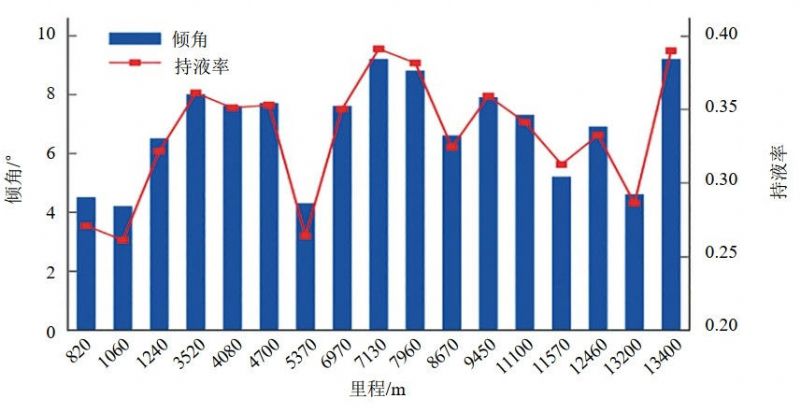 圖 2 易腐蝕位置持液率與管道傾角對應關(guān)系圖