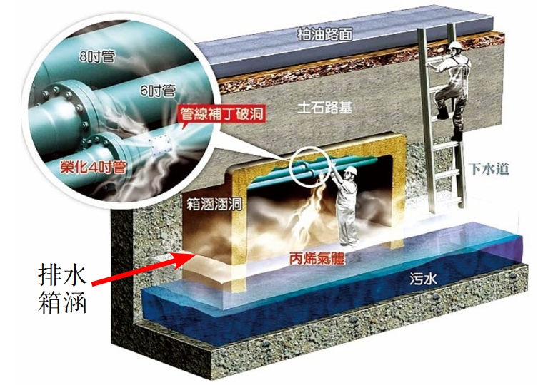 圖 1 丙烯管線(xiàn)直接貫穿排水箱涵
