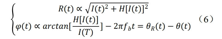 式中fb為AOM的頻移量,一般為80 MHz或者200 MHz。由于fb通常具有較高的頻率與較窄的頻寬,我們可以簡(jiǎn)單地利用希爾伯特變換解調出相位信號: