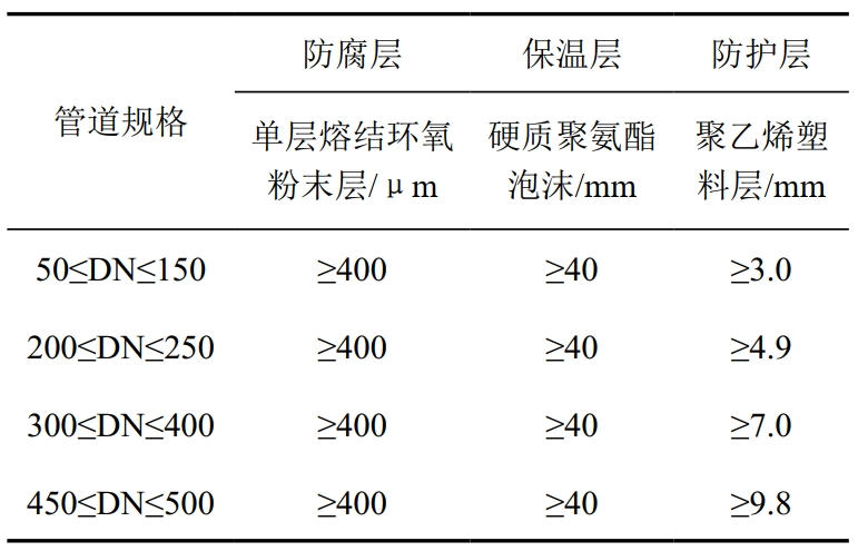 表 2 “管中管法”工藝防腐保溫管結構數據
