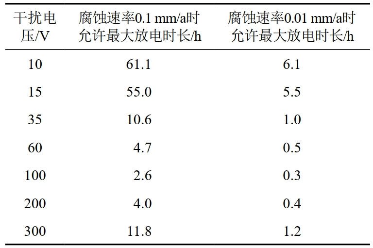 表 3 動(dòng)態(tài)直流干擾腐蝕防護安全邊界