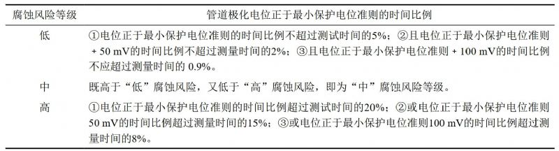 確定動(dòng)態(tài)直流干擾評價(jià)方法。在動(dòng)態(tài)直流雜散電流干擾下的腐蝕風(fēng)險采用管道極化電位相對于在該環(huán)境中管道陰極保護電位準則偏移量及時(shí)間比例進(jìn)行判斷。
