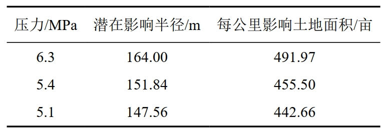 表 2 不同操作壓力下潛在影響半徑與影響土地面積對比
