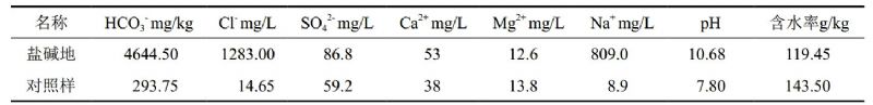 選用材質(zhì)為X65管線(xiàn)鋼,裸露面積為6.5 cm2的圓形試片, 其主要化學(xué)成分(質(zhì)量分數%)為: C 0.03,Si 0.17,Mn 1.51,P 0.024,Ni 0.17,Cu 0.04,Mo 0.16等。取某鹽堿地現場(chǎng)土壤樣品,以北京市昌平區非鹽堿地土壤為對照試樣,于實(shí)驗室進(jìn)行理化性能測試(表 1)。表明鹽堿地土樣的HCO3-、 Cl-、SO42-、pH明顯高于對照土樣;兩種土壤成分可以代表典型鹽堿地和非鹽堿地土壤條件。
