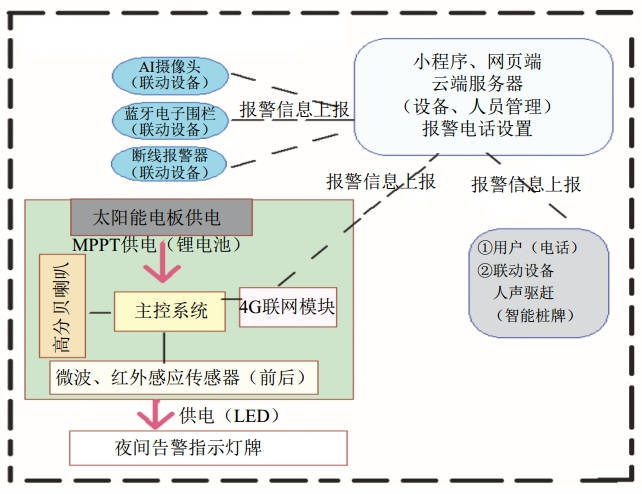 智能聯(lián)網(wǎng)報警:內置4G-cat1物聯(lián)網(wǎng)模塊,報警信息實(shí)時(shí)上傳服務(wù)器,同步通過(guò)電話(huà)、短信遠程通知管理員;支持與智能指示樁聯(lián)動(dòng),實(shí)現區域化聲音驅趕。